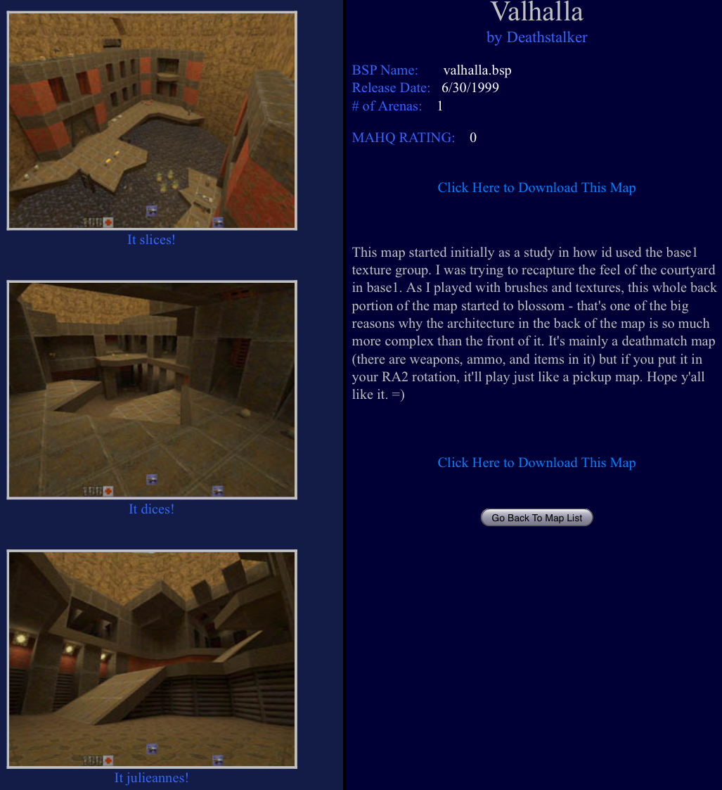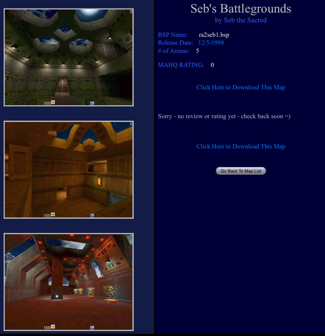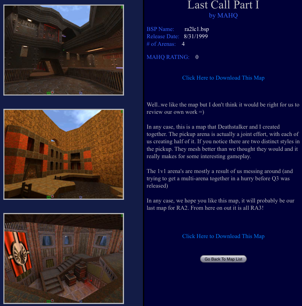 MAHQ Design and Content by Mike “big0nes” MacDonald and Scott “Deathstalker” Maclean copyright 1999 Multi Arena Headquarters (MAHQ) on PlanetQuake.com