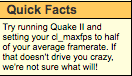 …Um…well it looks like the all-knowing God of Quake has spoken. At least you had the common sense to put down a quantitative number. But listen to yourself. A good minimum FPS is between 80 and 150? Gawd, that’s like 1% of the Quake-playing population. I’d have to say that it’s never been the case with me. There’s no doubt that the higher your framerate, the more updates you get, and the more fluidly you’ll be able to react. Having a faster system is about as much of an advantage as you could hope for, but coming from a modem background with an “average” system, I always felt that practicing (or at least starting off) with a disadvantage is the best way to improve skill.