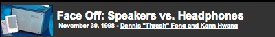 Yeah, I KNOW it’s definitely NOT between those headphones of yours. When you say there’s more to PC audio than just stereo, you’re forgetting that there’s also more than just games. If you’re in an office environment, I’d agree that you’re more or less stuck with headphones, but some of us enjoy more than just the snapping of bones or the wet thud of buckshot in flesh. Take for example that novelty called “music.” In a high-quality recording on good speakers, it’s possible to sit back and make out apparent physical locations of instrumentals and vocals in a three-dimensional soundstage – sounds appear as definitive 3D objects in space, rather than emanating from two small boxes in front of you desk. A good pair of speakers should disappear behind the soundstage, allowing you to concentrate on the music rather than the speaker. You simply can’t get the same experience from a pair of headphones. End of story..