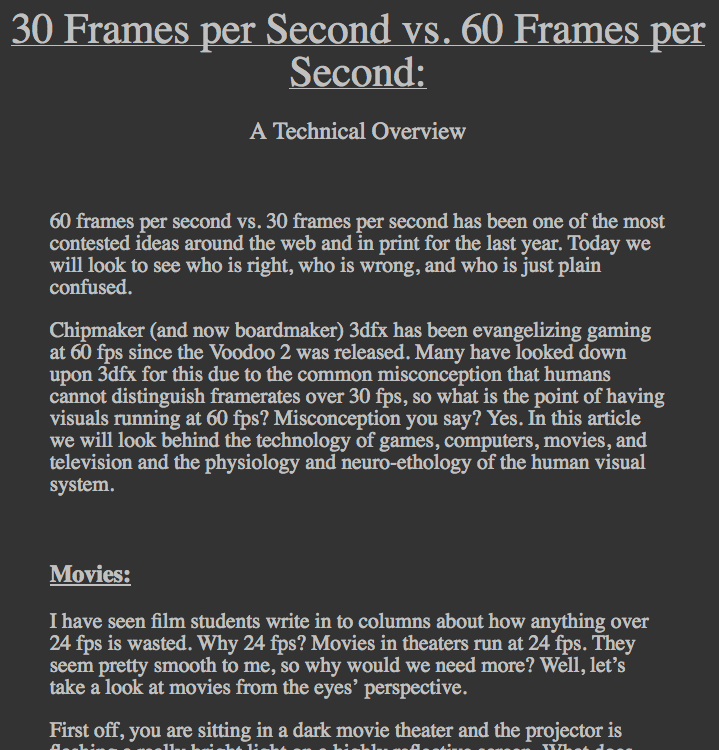 | 60 frames per second vs. 30 frames per second has been one of the most contested ideas around the web and in print for the last year. Today we will look to see who is right, who is wrong, and who is just plain confused.