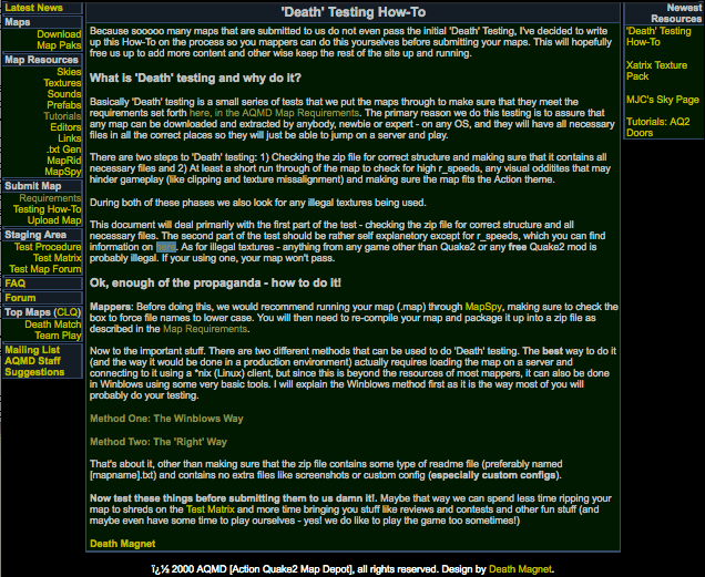 Basically ‘Death’ testing is a small series of tests that we put the maps through to make sure that they meet the requirements set forth here, in the AQMD Map Requirements. The primary reason we do this testing is to assure that any map can be downloaded and extracted by anybody, newbie or expert – on any OS, and they will have all necessary files in all the correct places so they will just be able to jump on a server and play.