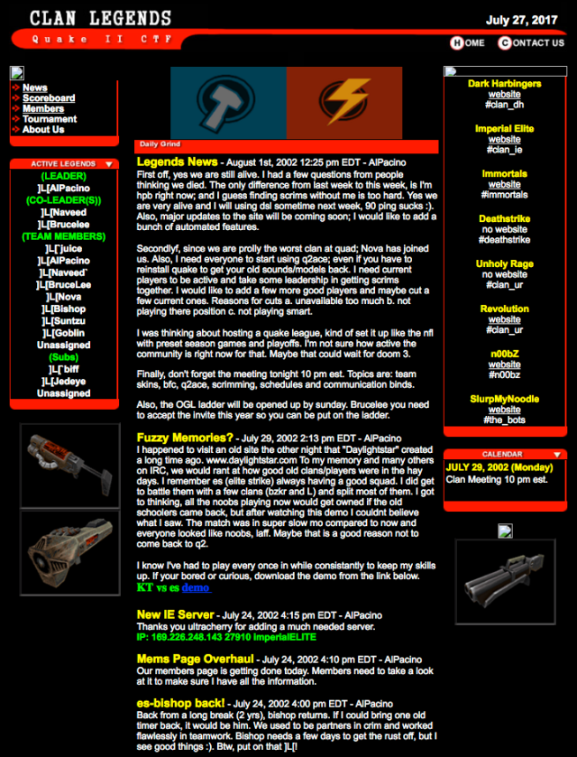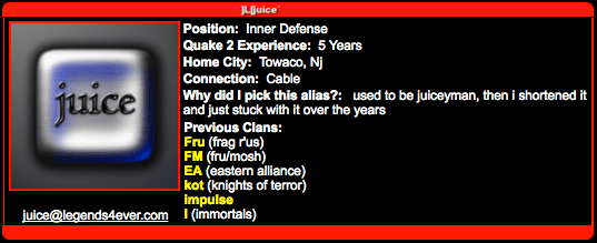 | Previous Clans: Fru (frag r’us) FM (fru/mosh) EA (eastern alliance) kot (knights of terror) impulse I (immortals) |