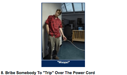 8. Bribe Somebody To “Trip” Over The Power Cord