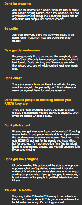 https://web.archive.org/web/19980121123049/http://www.gamers.com:80/features/1997-12/14-quake_newbie/newbie-quake_netiquette.asp