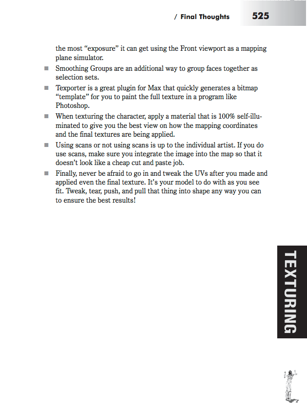 The computer books on my shelf that I like the most and recommend to others are the ones that focus on completing a specific task or project. That’s why I’ve written this book the way that I have. I wanted to make a useful guide for creating a low-polygon character in Max for use in a real-time game like Quake III: Arena. Don’t look for this book to cover lighting and rendering techniques. Although I do get pretty basic at times, Modeling a Character in 3DS Max is not a replacement for your Max manuals and tutorials… it’s a companion to them.