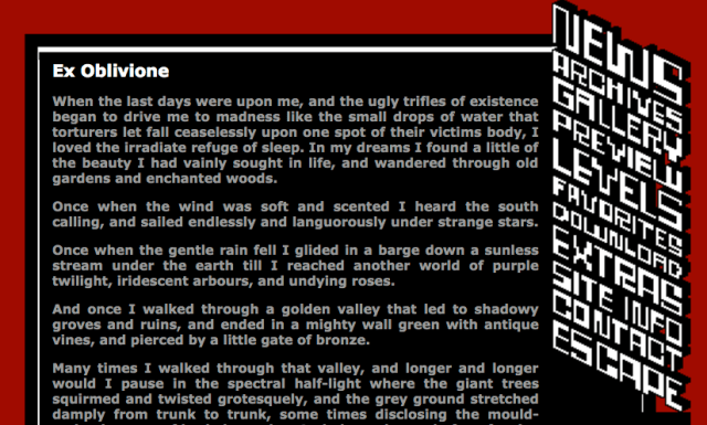 Ex OblivioneWhen the last days were upon me, and the ugly trifles of existence began to drive me to madness like the small drops of water that torturers let fall ceaselessly upon one spot of their victims body, I loved the irradiate refuge of sleep. In my dreams I found a little of the beauty I had vainly sought in life, and wandered through old gardens and enchanted woods.