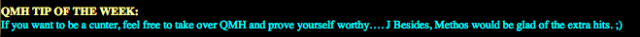 If you want to be a cunter, feel free to take over QMH and prove yourself worthy…. J Besides, Methos would be glad of the extra hits. ;)
