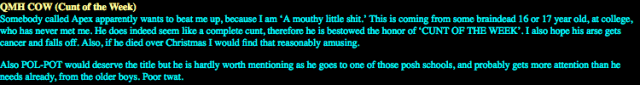 A few people have been telling me recently that I have ‘Lost it’ and I am not capable of cunting people thoroughly any more…. Well, the simple fact is, I am sick of you tiresome halfwits, and cannot be bothered making anything that may be construed as even ‘a small amount of effort’ for any of you twats. (This update being an exception)