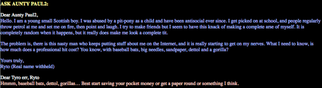 <Paul2[moo]> HE IS A COMPLETELY RETARDED FUCKED UP CUNT OF A INBRED HALFWITS ARSE.