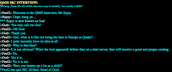 Right, now, I know a lot of people out there might be thinking “Who the fuck is Paul2?” If you do not know me then go to #quake.uk on IRC during the day and tell me I am a cunt, I will probably introduce myself in my own unique way. Also, if you doubt my Quake SkillZ, then let me assure you… I am proper CRAP!