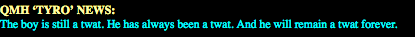 The boy is still a twat. He has always been a twat. And he will remain a twat forever.