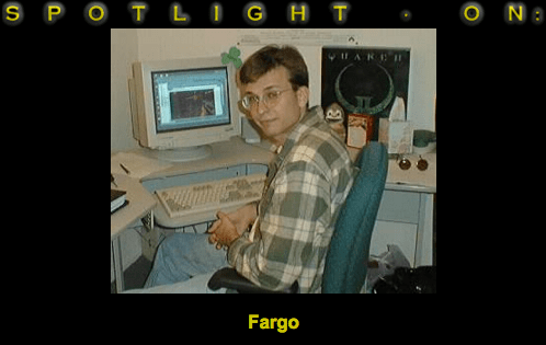 So Bastard from PlanetQuake says he’d like me to do some writing for them, and asks if I’d like to use a nickname. I didn’t really bother to think about it. I’d just seen the movie “Fargo” and thought it ruled, so I’d been playing Quake on the Internet with that name, and said, “Use that.” I didn’t suspect I’d actually ever be called “Fargo” in day to day conversation. - When did you first start getting into First Person Shooters? –