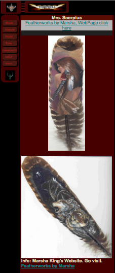 Mrs. Scorpius Featherworks website:Featherworks by Marsha, WebPage click here