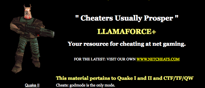 Perhaps when everyone has cable modem access, or T1s are as common as ATM machines, there will be no need for LLamas. Perhaps when the day comes that they release a game that is foolproof against cheating (I don’t think this will happen) then the LLama will be cast to the wayside. But until then, until either or both of these things occur- The LLama is here to stay baby so get used to it.