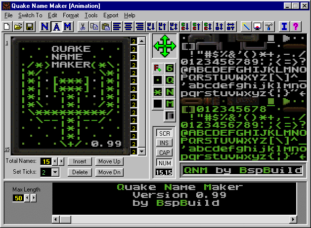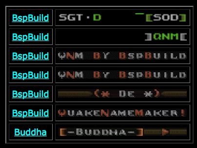 Quake Name Maker is a Win95 GUI for making names, animated names, and messages for Quake and Quake related games like Hexen2, Quake2.