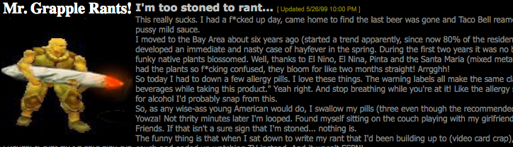 I’m too stoned to rant… [ Updated 5/26/99 10:00 PM ]