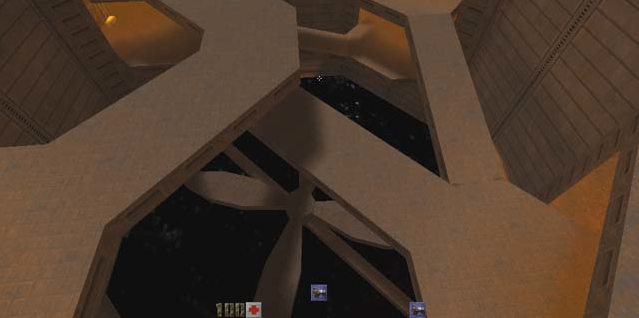 I thought I was going to die the first time I fell into the fan. Oh, but what a fun ride it was. This map has one large catwalk area with a large fan at the bottom and two mid-sized rooms. The rest of the map is almost pure hallway, some leading back to where you started. For you Eraser fans, it comes with the route file. I wish more people included this.