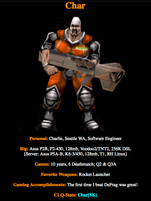 Games: 10 years, 6 Deathmatch; Q2 & Q3A