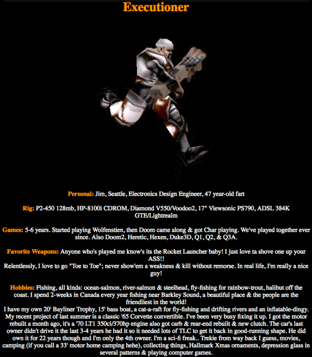Rig: Pentium 233MMX, 64mb, Creative Labs 3D Banshee Blaster OC’d, MS Intellimouse-wheelie, COM-21 cable-modem