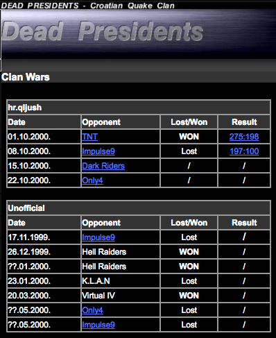 U fak … e jesi me ćopio … mislim da je HD … iam doma i demose i screenshotove, razguzili su nas ko kante sa njihovom tada valjda najlošijom postavom … od prve postave igrao je samo Darkman … nisam siguran da smo s njima imali prvi klanfajt … možda se W31rd0 ili Dx budu bolje sjećali …