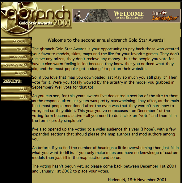 The qbranch Gold Star Awards is your opportunity to pay back those who created your favorite models, skins, maps and the like for your favorite games. They don’t recieve any prizes, they don’t recieve any money – but the people you vote for have a nice warm feeling inside because they know that you noticed what they did, and the most popular get a nice gif to put on their website.