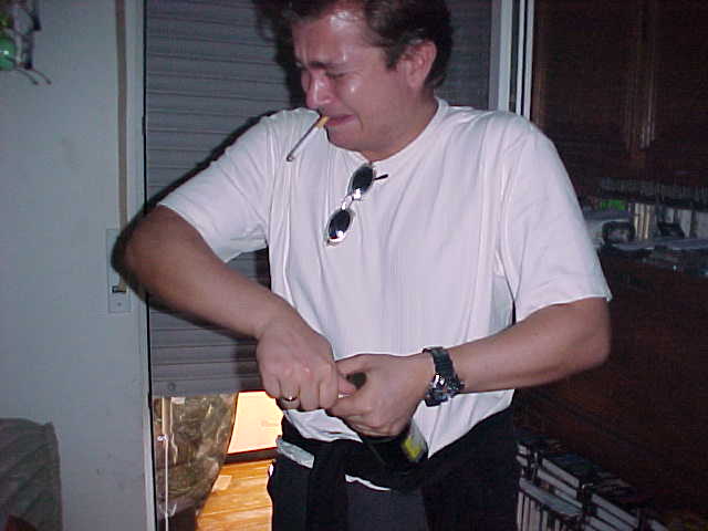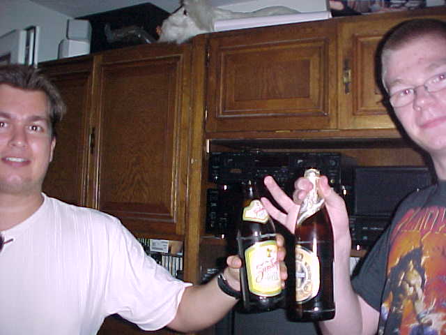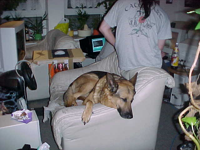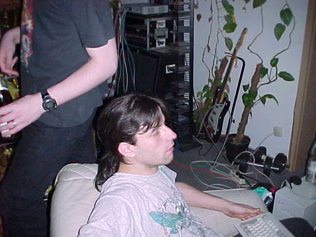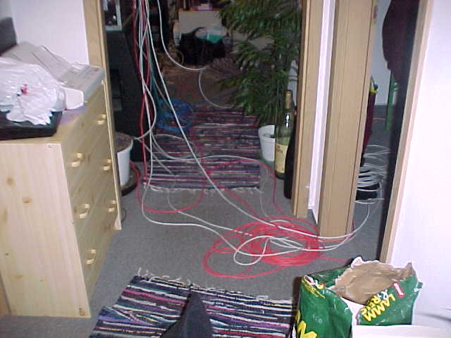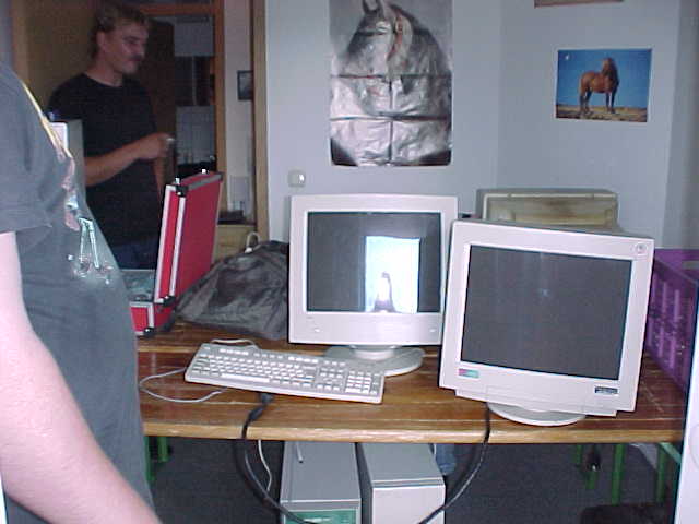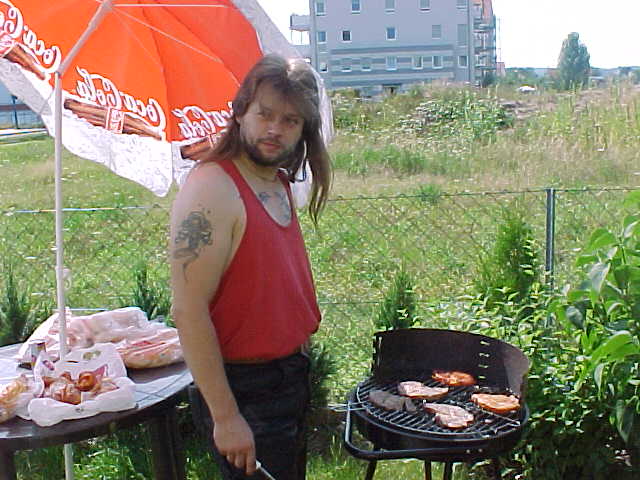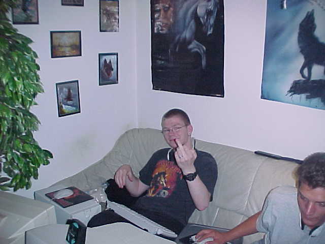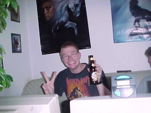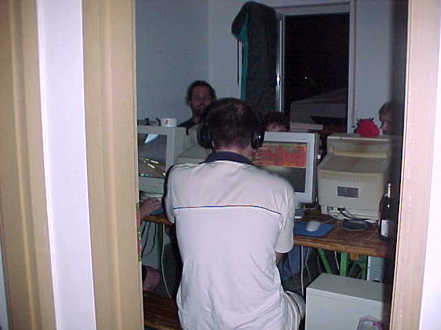 Als ich gegen 16 Uhr von der Arbeit kam stand peb Blade schon vor der Tür und pennte. Darki und Alsi hatten sich nach den Anweisungen von Napalm den sie ja abholen mussten verfahren hahaha. Blade und ich bauten schon mal so langsam die Sachen auf. Meine Schwester Bloodrayne tauchte auf und danach kamen auch schon Darki, Napalm und Alsi. Langsam wurde es eng in meiner Wohnung. Ich musste noch mal kurz weg was erledigen und da war dann auch schon Bone und Schlachter anwesend. Pacifier und Bandit trafen dann auch noch ein und dann waren eigentlich schon am Freitag so ziemlich alle da ausser Axl und Lightbender. Wir zockten auf jeden Fall munter drauf los und das Netz das wir hatten war dank dem Server und dem Switch den uns die Pebs mitbrachten augeil sauschnell und saustabil. Keiner hatte irgendwie Probleme und das war einfach geil. Es wurde bis spät in die Nacht gezockt, und nach wenigen Stunden Schlaf die nicht ganz so komfortabel waren wie die meisten es gewohnt waren ging es in der nächsten Früh munter weiter. Alsdann tauchten noch Axlschweiss und Lightbender auf und es waren hiermit alle VP s ausser Zapper und Corum anwesend. Nachmittags wurde dann bei dem geilen Wetter gegrillt und kräftig Bier gepumpt. In der Wohnung glich es mittlerweile einer Sauna da die 14 Rechner ganz schön Hitze abstrahlten. Bloodraynes Server wurde von Axl noch mit einem Brenner versehen und los ging das muntere Brennen während des Zockens. Es wurde zwar meistens alle möglichen mods von Quake2 gezockt aber KINGPIN kristallisierte sich als absolutes Fungame heraus auf dass echt jeder total abfuhr und wir zockten und metzelten weiter bis tief in die Nacht. Bloodrayne brannte wie eine Weltmeisterin und war auch ganz nervös irgendwie *hihihi*. Am nächsten Morgen wurde noch ein wenig gezockt und so langsam aber sicher machten sich die Leute wieder auf den teilweise langen Heimweg. Übrigblieben am Schluss nur noch Schlachter, T-Bone und ich. Wir beseitigten dann auch das Schlachtfeld das übrigblieb :))) Nachdem wir so ziemlich alles weggeräumt hatten und alles zusammengebaut hatten zockten wir noch bis nachmittags um 16 Uhr Quake2 im Coop Modus und hatten noch einen Heidenspass. Schlachter brach dann auch auf denn er musste ja auch noch nach Lippstadt zurück. Ich brachte dann noch Bone nach Hause und ich muss zum Schluss sagen dass dieses Treffen absolut geil war. Alle kamen super miteinander auch wenn Bloodrayne irgendwie im Brennwahn war *GG*. Ich kann mir fast