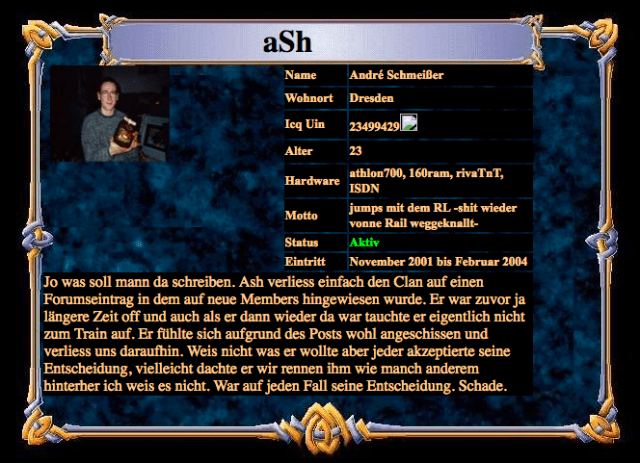 Hm! Um 4 fuhr ich los holte Napalm meinen Bruder ab und dann gings ab zu Bone. Als alles verstaut war in das kleine Auto gings dann auch endlich los. Ab auf die A3 Richtung Frankfurt und von einer Baustelle zur anderen! Gegen Acht trafen wir uns dann mit Bandit und Pac in Frankfurt gingen noch schnell ins Mac warfen ein Frühstück ein und weiter gings Richtung Meerbusch! Kurz nach Köln kam dann natürlich der Hammerstau! Sichtlich genervt suchten wir nach Lösung und verliesen die A3 und fuhren über einen kleinen Umweg weiter. Irgendwann schafften wir es dann endlich in Meerbusch einzutreffen. Als wir die Stätte betraten bekamen wir von einem Security dann auch ein paar Aufkleber für Rechner und Monitor auf denen unsere Namen draufstanden und ein Namensschild! Unsere Plätze waren schon reserviert und flugs wurde alles aufgebaut! Wahnsinn alles funzte so ziemlich aufs erste mal. PeB hatte sich ganz schön ins Zeug geworfen eine riesige Leinwand war aufgebaut auf denen das Spielen verfolgt worden konnte. Die Ecke in der die ganzen Server standen glichen einem Schlachtfeld :=)) Ich glaube da waren 3 Millionen Meter Kabel verlegt!! Hehehehe. Trotz dieses Kabelchaos gab es nicht einen einzigen Aussetzer des Netzes! Auch ein Ftp Server war vorhanden. Kaum angekommen wurde erstmal kräftig mit Darki und Alsi Bier gepumpt! Ein Haufen Leute die ich auch schon vom Netz kannte ( Xerxes 187, Oct Ace, Lachnisch 187. Peb Ötze. Blade. Wolvie ) waren auch da und wir unterhielten uns gut und es war auch ein Heidenspass. Genauso hatte ich mit dass alles vorgestellt. Das Essen in der Gaststätte war zwar teuer doch es schmeckte einfach hervorragend. Im Laufe des Abends hatten wir ein Funmatch gegen den Clan KQK( Ich hab leider den Namen vergessen *GG*) das wir auch gut gewonnen!! Auch gegen 187 hatten wir ein recht spassiges Funmatch es wurde viel gealbert und gelacht! Wir verloren zwar aber wir gaben ihnen gut Kontra. Wir konnten auch mit ICQ Online gehen! Ich weiss zwar bis heute noch nicht wie das ging aber naja was solls! Von vielen hörte ich dann nur was ich dachte du bist auf der Zocken net heheheheehe. Der Abend verging wie im Fluge und dann später wurde eine kleine Veranstaltung gemacht! Gespielt wurden die DM64 Maps und es waren immerhin beim stärksten Punkt 52 Leute gleichzeitig auf dem Server! Es machte wahnsinnig viel Fun und GOV Hunter stellte sich dann am Schluss als Fragmaster heraus! Immerhin schaffte es BANDIT sich auf Platz 3 hochzuschiessen ( APPLAUS ) und am Schluss wurden dann die Namensschilder eingesammelt und von den Leuten von GXP 5 Freikarten verloost. Ich weiss noch wie ich sagte na hoffentlich gewinne ich da nicht da es für mich nicht immer so einfach ist auf solche Treffen zu kommen wegen meinem Hund und so und als aller erster wurde doch dann unglaublicherweise mein Name aufgerufen. Das Gelächter bei unseren Leuten war riesig gross und ich konnte es einfach nicht fassen. So gegen 4 Uhr wurden wir dann langsam müde und wir entschieden uns heimzufahren. Also alles wurde eingepackt und wir verabschiedeten uns von allen. Kaum draussen meinte Napi dann dass er kotzen müsse und als er dann draussen stand und so seltsame Geräusche von sich gab lachten Bone und ich uns fast tot über den armen Kerl hehehehe. Natürlich kamen wir auch auf diesem Rückweg in einen verdammten Brutalostau und wenn Nami ne Rail gehabt hätte ich glaube mann müsste heute noch die Berge von Erschossenen wegräumen *GG* Um 11 Uhr trudelten wir schliesslich erschöpft in Nürnberg ein!! Alles in allem eine echt gelungene Lan session. PeB kann echt stolz sein so etwas auf die Beine gestellt zu haben und ich hoffe doch dass es eine Zocken 3 geben wird.