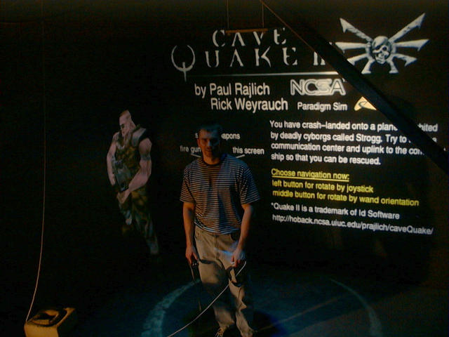 CAVE QUAKE II is a very popular CAVE demo and it’s great for showing off CAVE technology. You show people a familiar environment but from a brand new perspective. I’ve distributed copies to CAVE sites around the world, including the Center for Parallel Computers in Sweden, which recently built the first six-wall CAVE.
