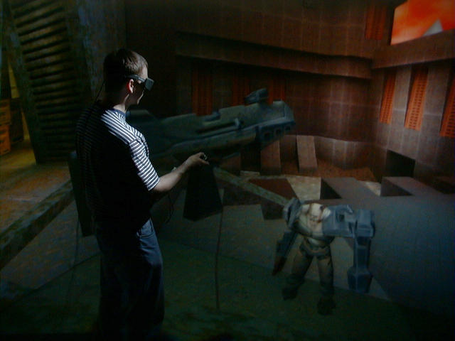 PR: The first CAVE program that I made was actually CAVE Doom. I wrote it as a grad student. It was a semester project for a VR class. In the end, the user could walk though the Doom levels from the first episode. I did add monsters and a rocket launcher. However, since these objects were actually sprites in the real game, I had to make my own 3D models for them. As you can imagine, they looked really cheesy. Hey, I’m a programmer, not a modeler!