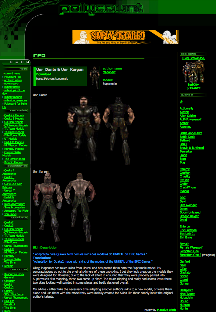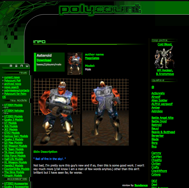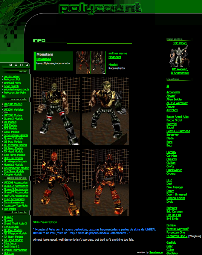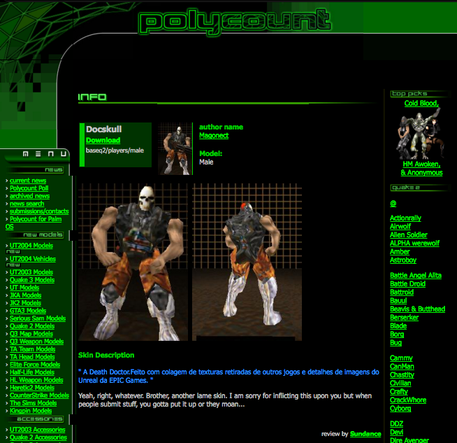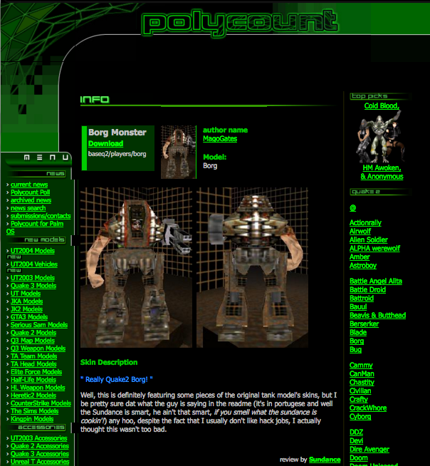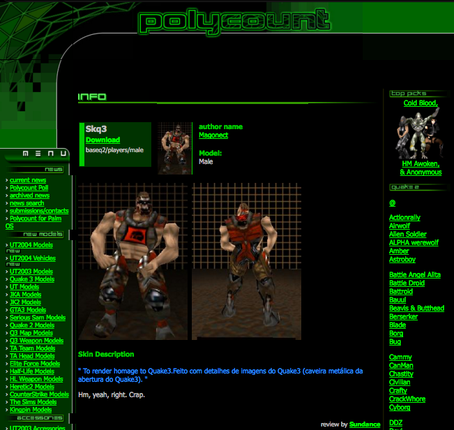 Novos modelos, skins, sons, mapas e modificações para Quake 2 criados por Mago Gates.