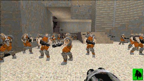 Pacote de sons: Os sons originais eram um caso clássico de querer ouvir falas climáticas durante o jogo….mas me parece que quake2 é um jogo de ação em primeira pessoa, e apesar das falas serem muito bacanas não dá pra ficar ouvindo falas cortadas por outras misturadas, etc…justamente na hora da pancadaria. Escolhi as mais climáticas e coloquei só na solene hora da morte, que aí tudo bem…