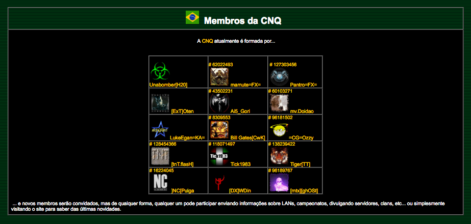 A sigla CNQ não representa nenhum clan, mas sim a tentativa de união dos clans em prol de uma longa vida para esse maravilhoso jogo.