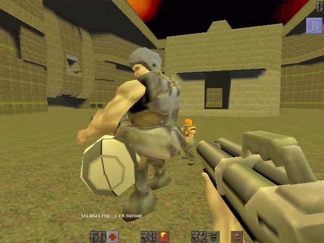 Doyoon – Well, Kick was my first Quake 2 project, but I was already proficient in programming C so it was no problem getting into it. I wanted to learn how to fool around with the Quake 2 code so I started making a simple modification that allowed skulls to be kicked around. Add balls, teams, goals, and maps, and it eventually became Kick. It took only two months to complete which is kind of rare these days since there are teams of people making mods that never get done over years. The biggest obstacle for me was probably making the maps since my only previous experience with maps were four Doom levels that I did a long time ago. After Kick, I did the programming for another mod called Rob the Strogg.