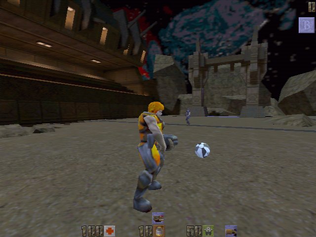 If you kill(and gib) a player from the other team, a ball will be created in the color of the opposing team. To score, you must then kick your opponents’ colored balls into their goals.