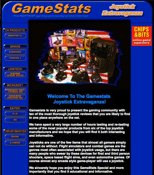 We hope you enjoy the Gamestats Joystick Extravaganza and find some useful and educational information in these ten documents. Please let us know what you think. We do this for you and we would love to have your feedback… You can mailrectitude@gamestats.com any comments and he will pass them on to the people responsible for the item in question. We welcome any question or comment positive or negative.