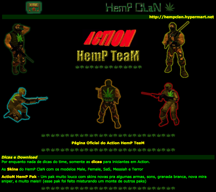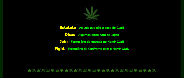 Bem Vindo ao Site do HemP CLaN. Nós Jogamos Jogos de Ação 3D e damos suporte a legalização do HemP. Enquanto este continua ilegal, nós lutamos encobertos rumo à Liberdade HemP!