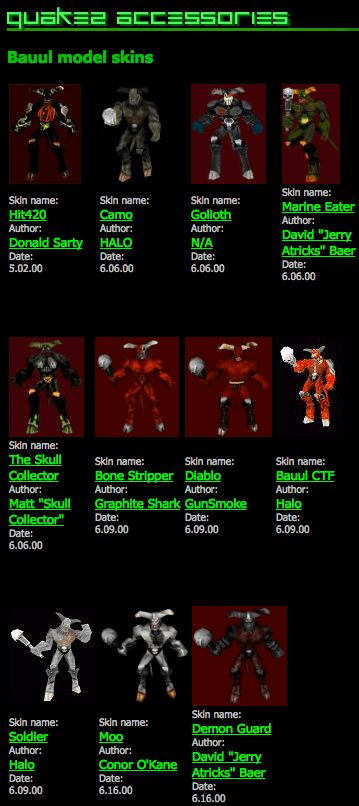 “Skins for Bauul Quake2 player by Conor O’Kane.” Conor O’Kane, author of Moo for Bauul