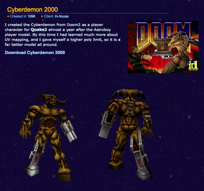 “Made for both Q2PPM and Q2Mods CyberDemon 2000 is Horny, Hungry, and after Blood. It’s been 5 years since he was last let out to play and he’s mad as hell.”
