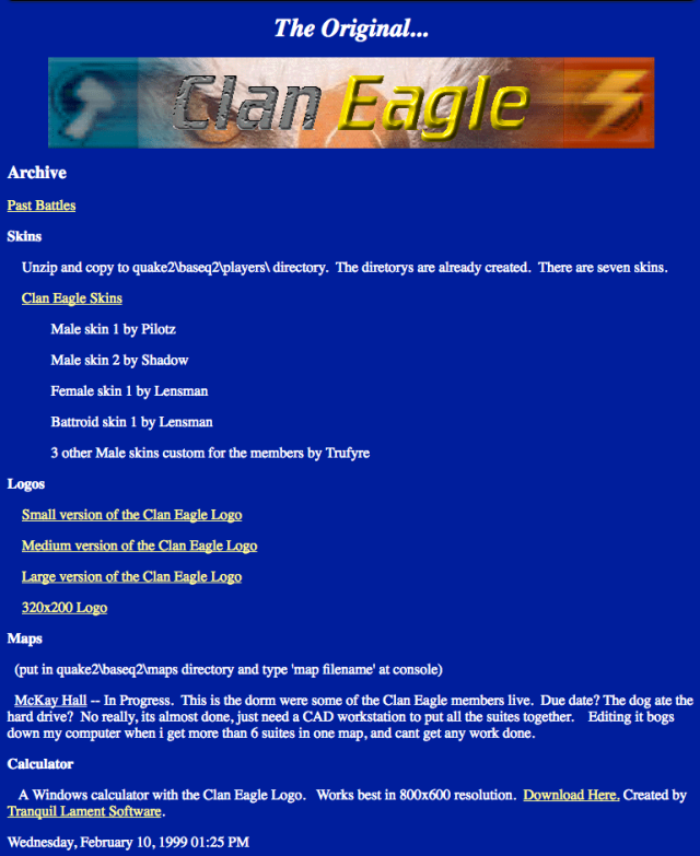 https://web.archive.org/web/20000309082853/http://www.quakeclan.net:80/claneagle/archive.html