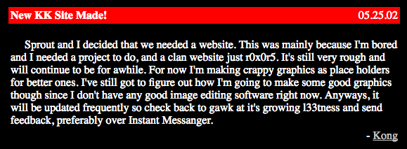 https://web.archive.org/web/20020913125302fw_/http://clankk.fragism.com:80/bio_kong.htm