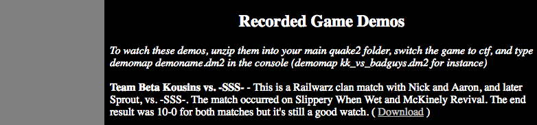 Kong and Sprout became more and more addicted to games as the years went on, adding more games to their collection including the ever popular “Half-Life” and “Quake3.” We are now not only A Quake II Clan, but furthermore an overall FPS Clan. The goal of our clan is not to dominate all others, or to be number one. The goal of our clan is to have fun.
