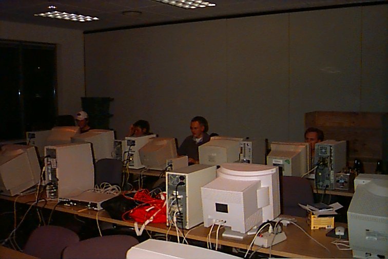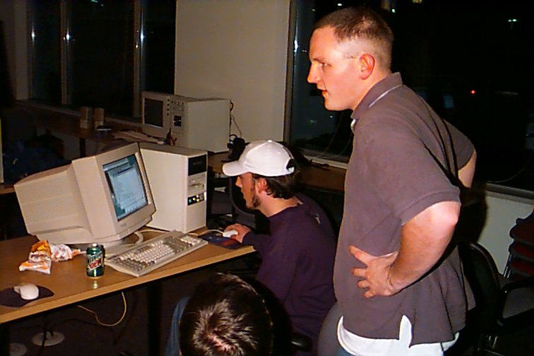 Networking: Well – I’ll start from the voulnteer meeting – that’s after the first bout of sleeping… heh. Not much to say about it. We schmoozed with some of the other players, and waited around for Angel and Jerry to show. Once they did – we kinda just talked about some stuff and went downstairs to the room that we were to be using. Moved some stuff in – and set up a few boxes – mostly to get the network running. Bedmanpro has been the DHCP server for the Free For All area the whole time – and WINS. Cool!