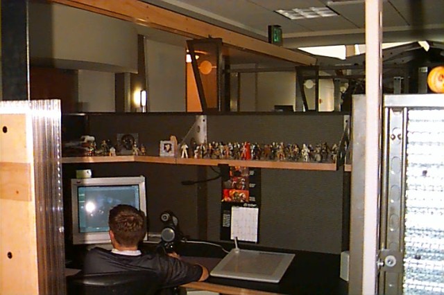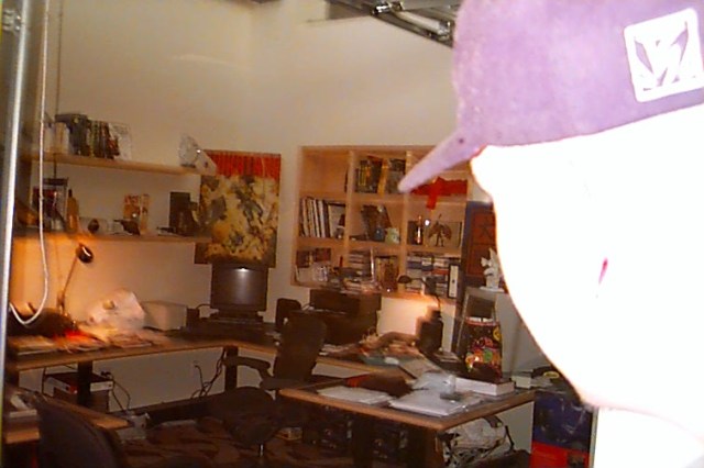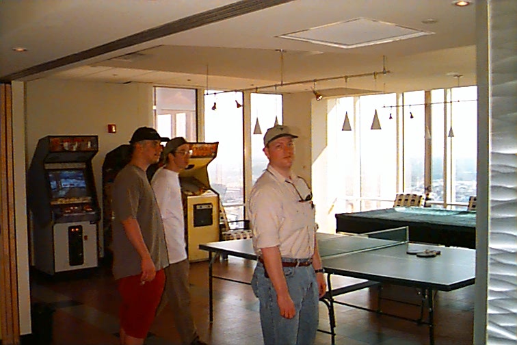 First Day: Once we got checked into the hotel, we called up Cleaner and Target over at Ion Storm, and asked for a tour. Target helped us out, because Cleaner was busy with a nasty deadline. Because of an IDIOTIC idea of mine, we walked from the Hyat to the cool ION Storm building – about 10 blocks. The office is really cool. I thought I had a cool toy collection – these guys are CRAZED about their toys. Heh. Docta and House both went a bit crazy with PFunks Digital camera – we got some awesome shots from their office. I’ll put them up later… After that – we went to the room, took a few showers – and crashed till 5:30 when I got all of us up for the meeting we were to have with PoliSh.