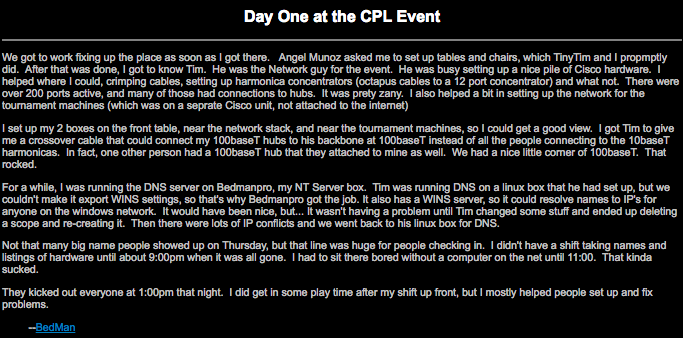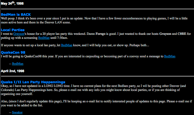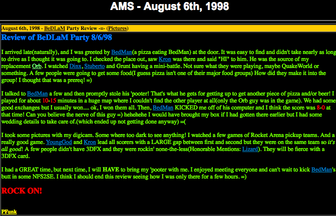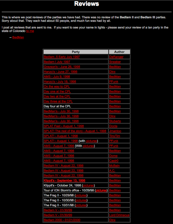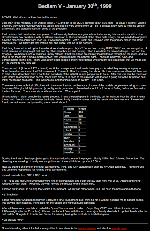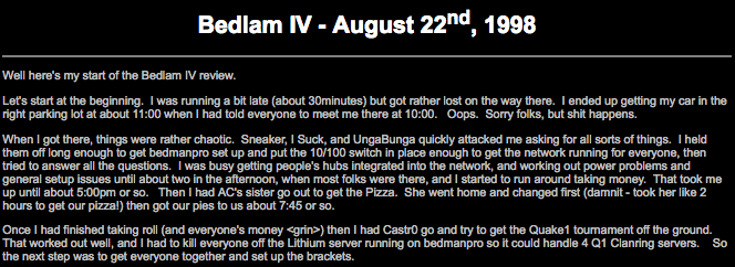 BedLam Gaming 1998: Colorado Gaming Events and LAN Parties