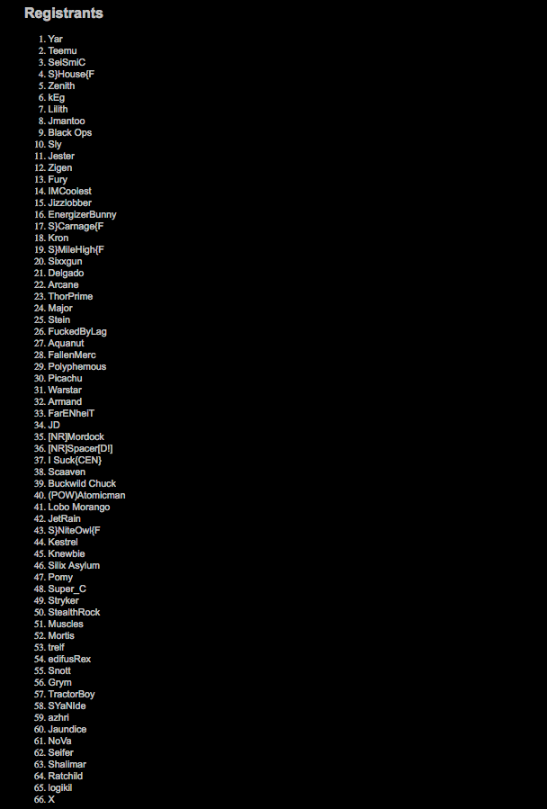 Second Day: We did a lot of setup, ran a lot of cables to hubs, and just had some general fun. The tournament was scheduled to start at 6pm, but it was a little late. Lillith, Enertia, Falling and _E_ all made it through their respective qualifying rounds to make the 1on1’s in the tournament, but House, TinyTim, Docta and I are still to have our large FFA qualifiers. Grayson didn’t make it – the machine he was using was a little flacky, and he forgot all of his configs and hardware in Austin. Doh!