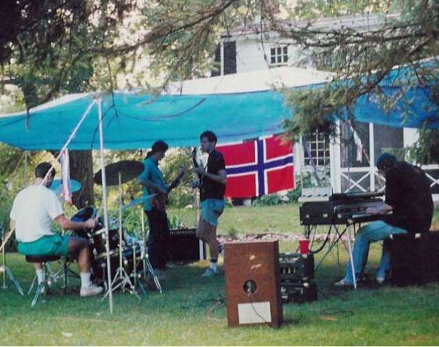 What would life be without music? I play Bass, Cello, and a bit of Drums, Sax, and Keyboards. Here’s some old pictures from a jam we had some years back. This is me with my fretless Pedula 5-string bass, PT on the Rhodes, ET on the Les Paul Custom, and JF on Drums.