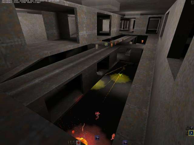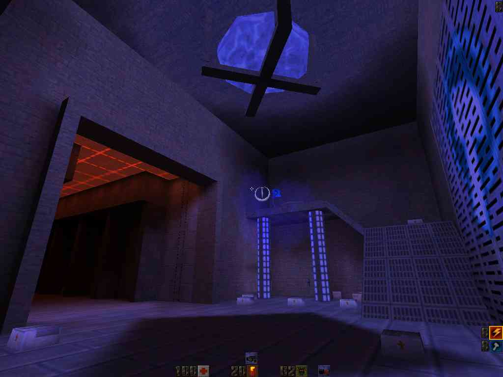 CTF map with two open areas and central walkways and perimeter ramps. Good for deathmatch too.