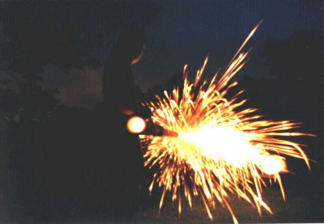 My mask is pinching my nose and it’s hard to breath, mostly breathing through my mouth now, pounding my way through deep snow. I just need to get to my base before Erling does. Does he know where it is? There’s no time to think about stepping on twigs now and my lungs are screaming for air. I stop for about ten seconds to breathe, where’s Jon? OK, just down to the stream, across, and up to our flag. At the edge of the stream I look across and up and there’s our flag. Just 60 feet more. I cross the stream and as I reach the other side I hear it. Someone’s shooting rapid fire from the top of the hill and I dodge back toward to stream but YOW! Shot in the knee.