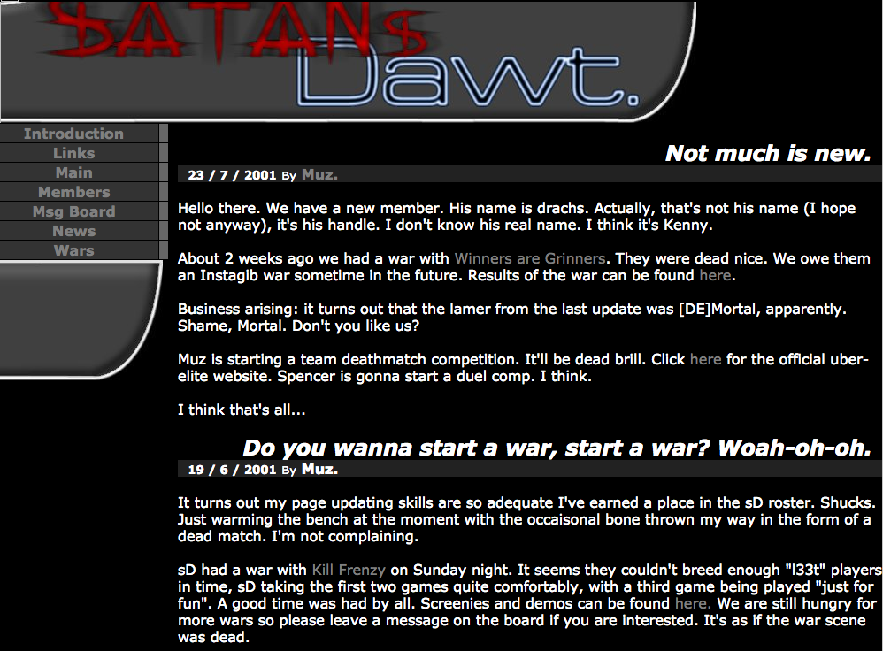 Earlier website for Satan’s Dawt: Australian Quake 2 clan