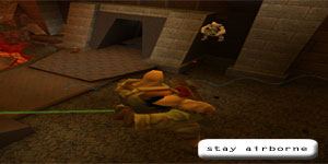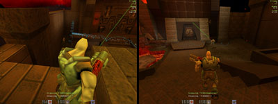 You also need to learn to shoot from mid air. Once you get your hooking going you will start to experiment with letting go early and sailing through the air. If you hook high and let go early you can often get a great birds eye view of the action below, and as long as no one has got you in their sites it gives you the opportunity to release some death from above. You can unexpectedly slip a slug in through a players nut (head) and out through their nuts (down below). It makes for a stunning frag. Practice this move, floating through the air is a great place to frag from as long as high flying suits the map. The Edge is a fine example of this kind of map.